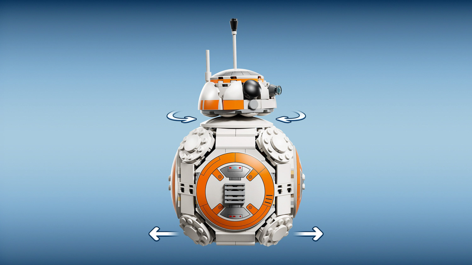 Move the LEGO Star Wars BB-8 Astromech Droid across a flat surface to make his head spin in random directions.