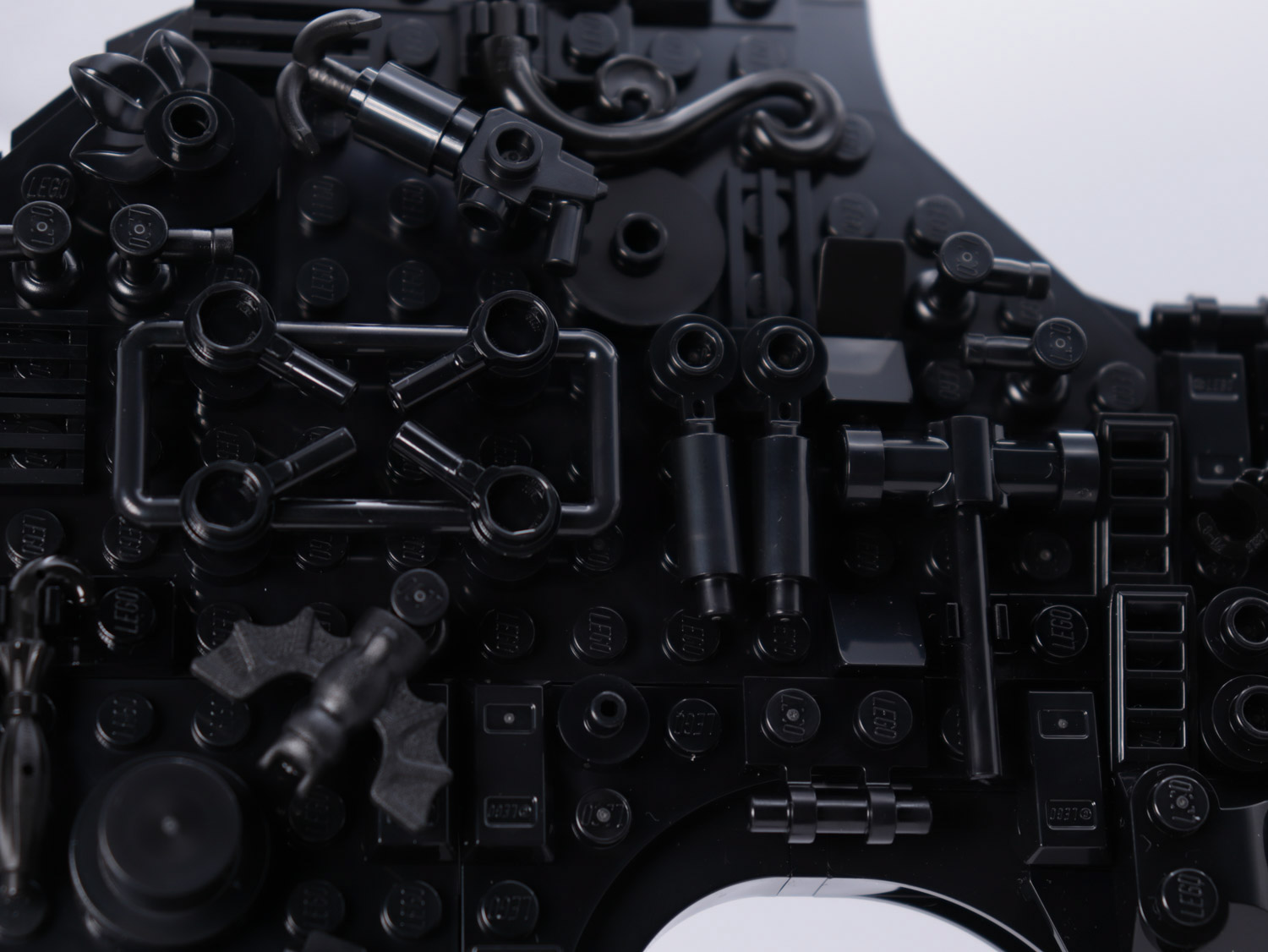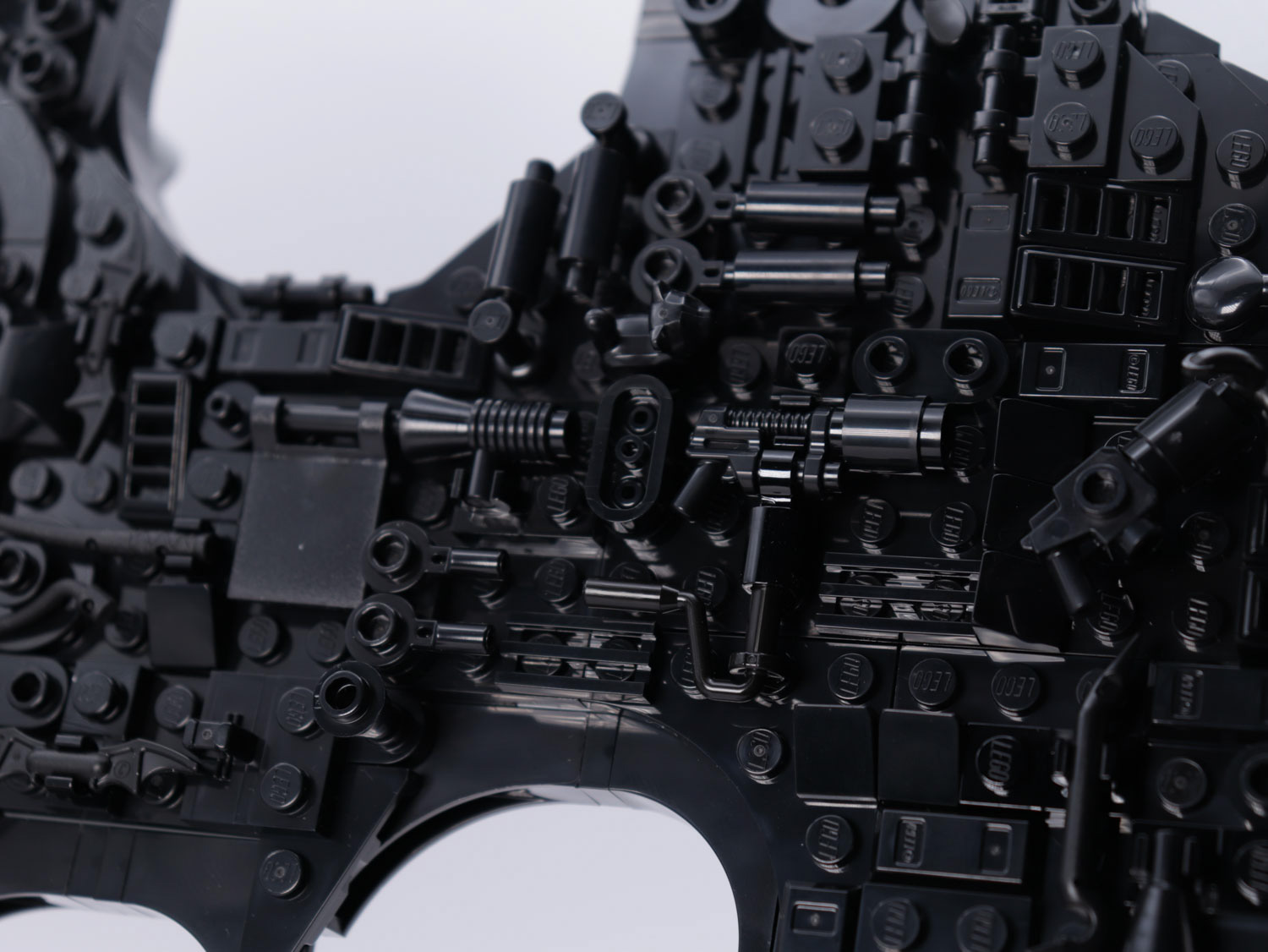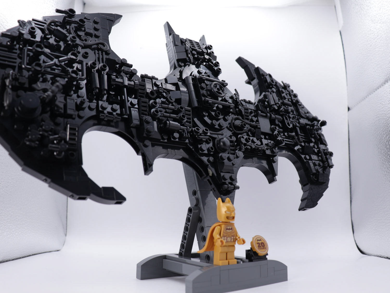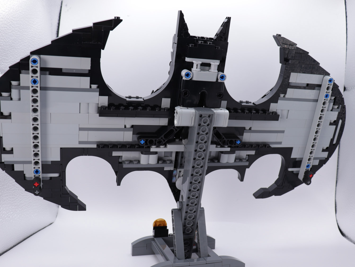 After a build experience of varying levels of complexity, the overall model gives a nicely shaped Batman display piece. With many greeble additions across the whole model, we get micro builds of various allusions to characters. This is not shy of almost the whole rogue’s gallery. With Catwoman’s whip, Riddler’s bowler hat, Poison Ivy’s vines… there’s a lot to see.