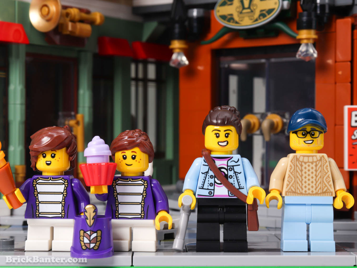 Despite generic heads and hair, I’m really impressed by the purple hat and coats of the children for the band. It’s a really nice pop of colour. I’m not 100% sure, but I also think the printing on the helmet is a reference to a previous modular. Someone let me know.