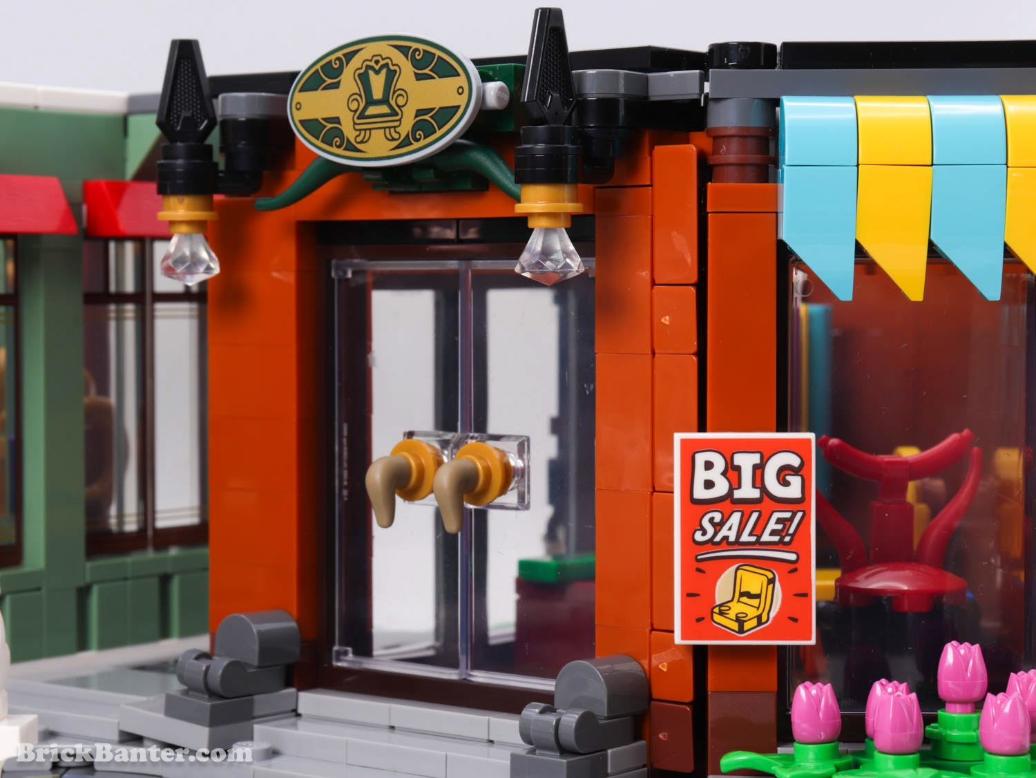We get ourselves two shops, a carpenter and ‘Brickley’s’, an instrument/music store. With Brickley’s being the larger building, we get a lot of space on the inside for Minfigures, which is aptly so if they are holding instruments. LEGO did well to ensure there was enough space here for figures to be, something older Modular Buildings lacked.