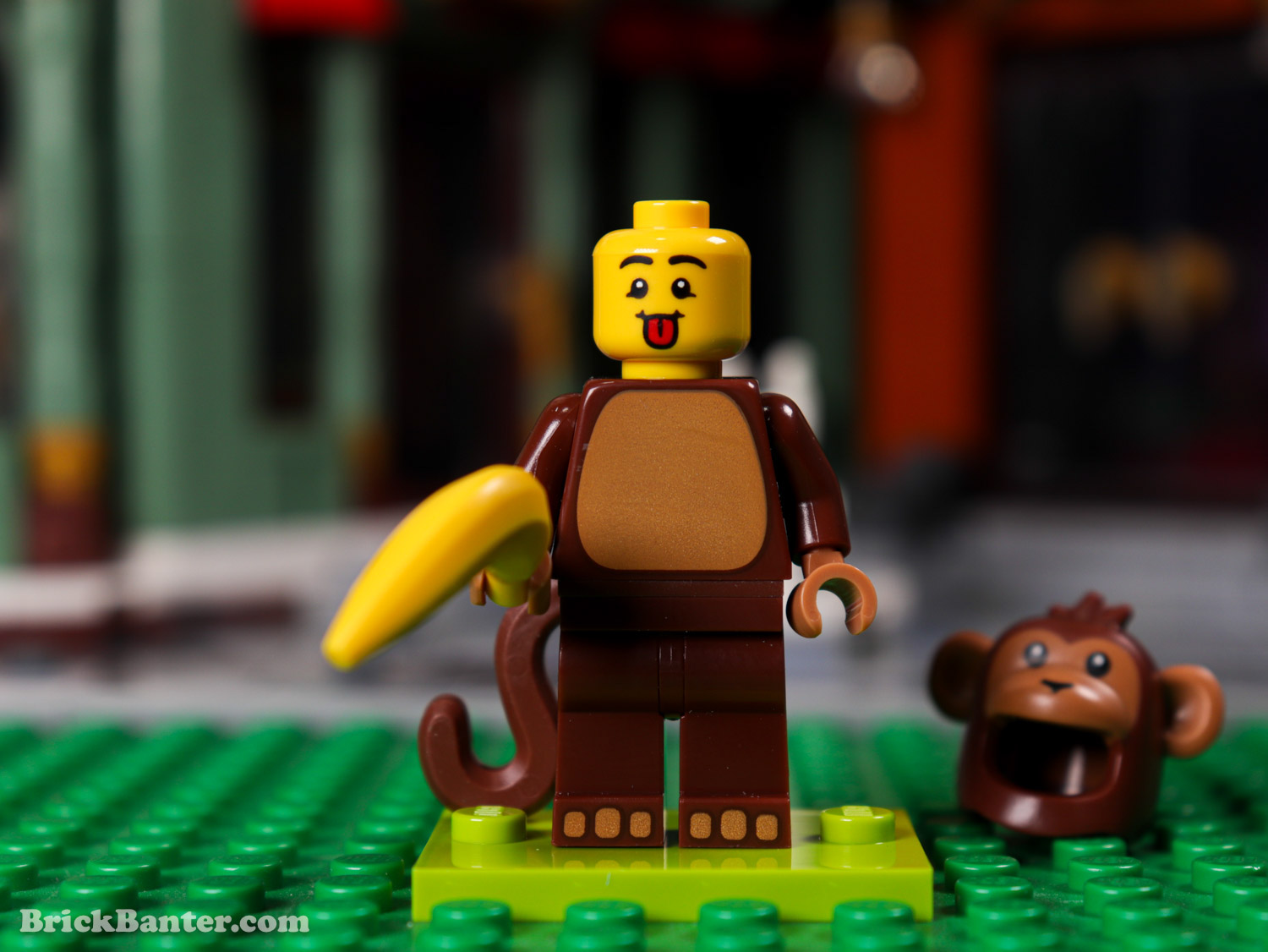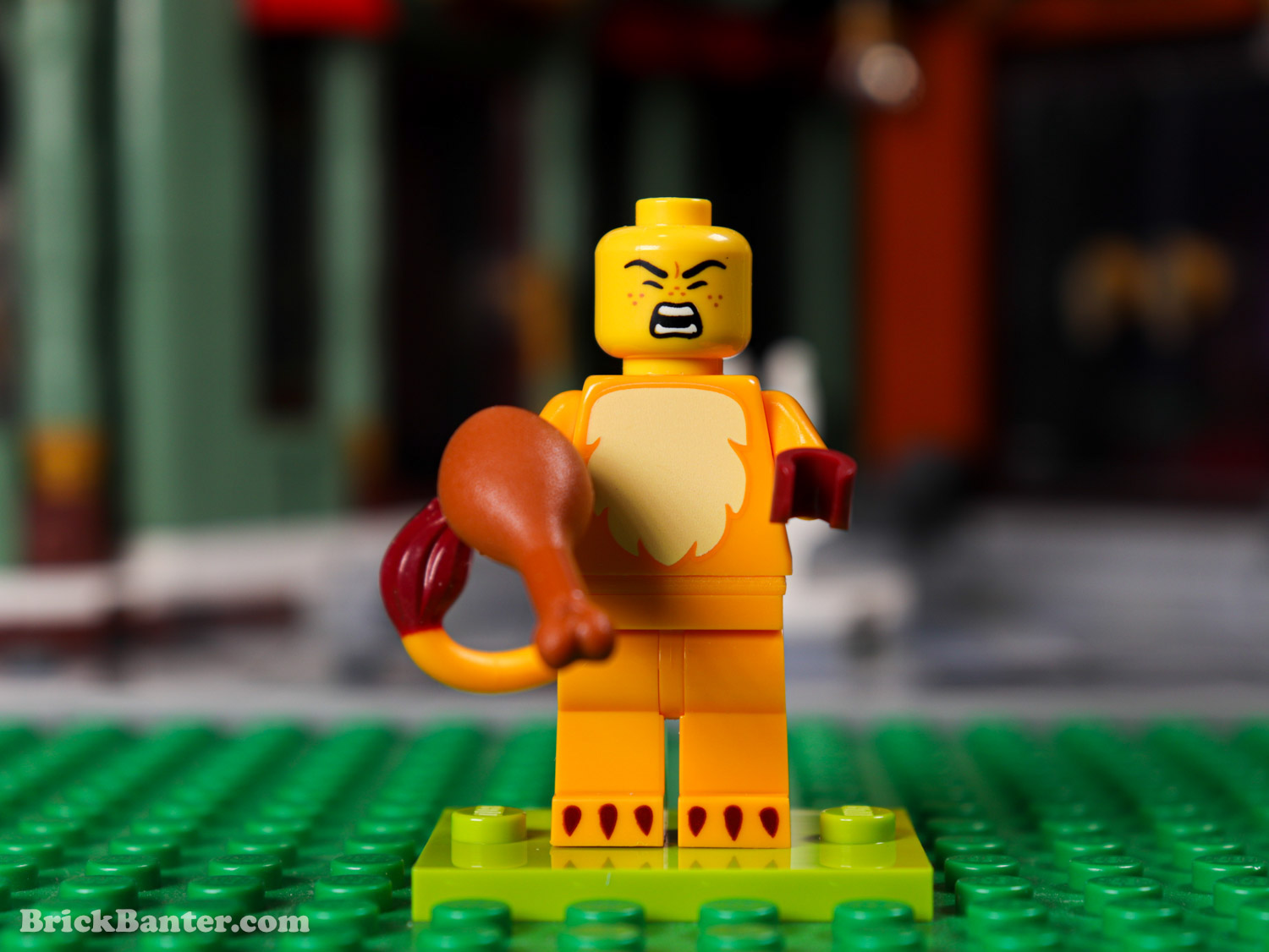 Probably one of my more favourite designs of the set, the monkey comes with leg printing as a bonus. I really like the helmet element and seeing the Monkie Kid tail here is hardly a surprise. I do also like the headpiece choice used here – as the costume wearer has clearly been monkeying around and got hurt.