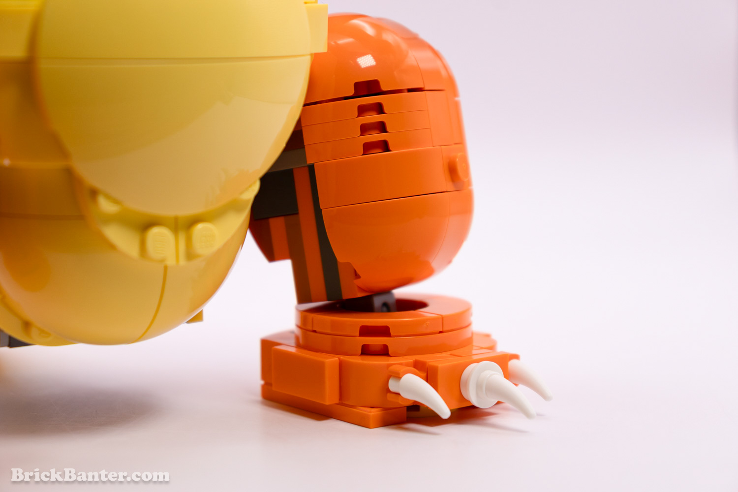 Blastoise is a big and tank turtle, and the sheer weight of him proves it. Their shell is made in a similar manner to that of Bowser, with all separate clefts of the shell brought together nicely. The arms stick out to the sides in a permanent side ways motion, but he has some pose ability in the forearm only. LEGO Pokémon Blastoise’s head does turn, but with limited range of movement due to aforementioned arms.