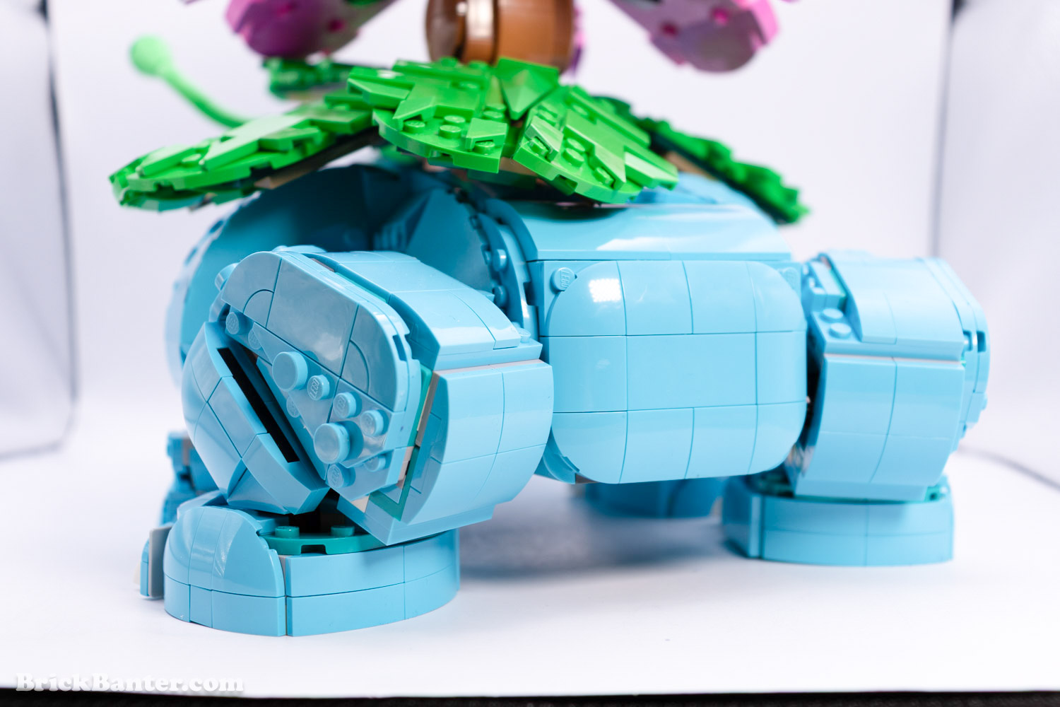 LEGO Pokémon Vensaur’s build was quite enjoyable, and filled with a surprising amount of complicated techniques. The vines extending out the front were a bit finicky to put on, but the overall details is great. I was also quite surprised to see the 6×6 hexagonal wheel shape on the top of the flower too, as I thought this element wasn’t in production anymore.