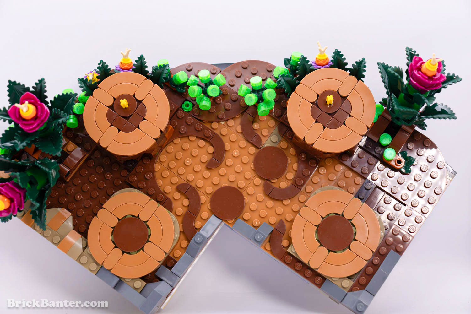The base for LEGO Pokémon Venusaur has us place them slightly elevated logs, locked down by the front legs. This gives a subtle angled pose to the model when it finally goes together, and yet hides detail underneath. There is fancy flora and tree root patterns that hide underneath that you’ll never see when fully on display.