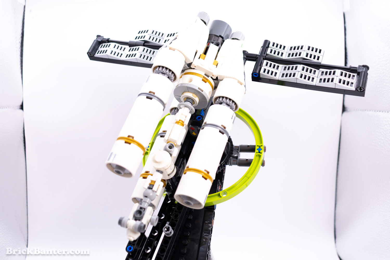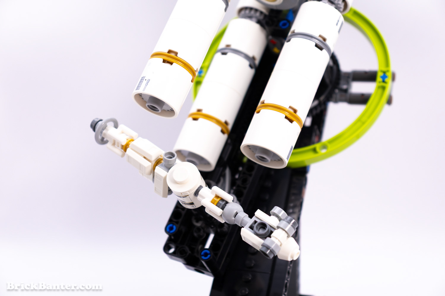 Well, the set to most people probably looks like a really confusing shape and isn’t clear what it is. This model is of the Project Hail Mary ship, and its ability to shift from its flight-mode to centrifuge-mode. Without getting too heavy into the science of it all, the idea is that the central shape of the model is the crew quarters, whereas the three posts act as thrusters. When in flight, the ship moves as one, but when ready to act, the central crew quarters separates from the thrusters, rotates inwards, and then spins in unison with the thrusters in a circular shape.