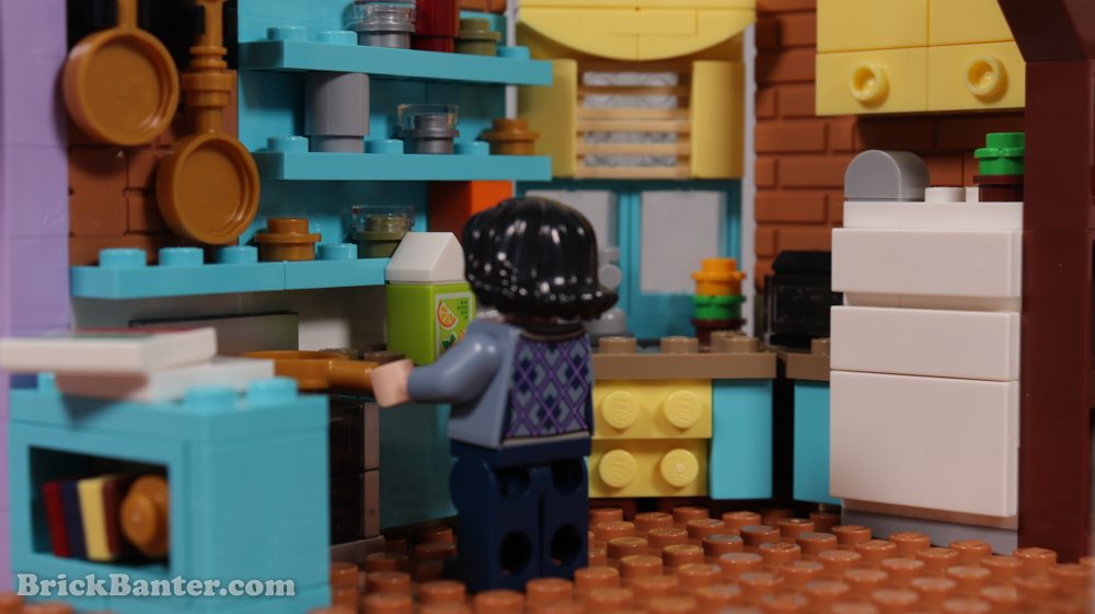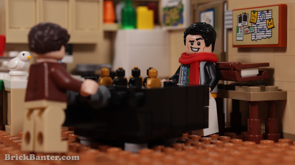 But it doesn’t connect the apartments together like I thought it would. That being said, a good little nod from LEGO to still sneak in a reference to when Rachel and Chandler drop their halves of their cheesecake in the middle of the walkway. Joey catches them eating it off the floor, inevitably joining in.