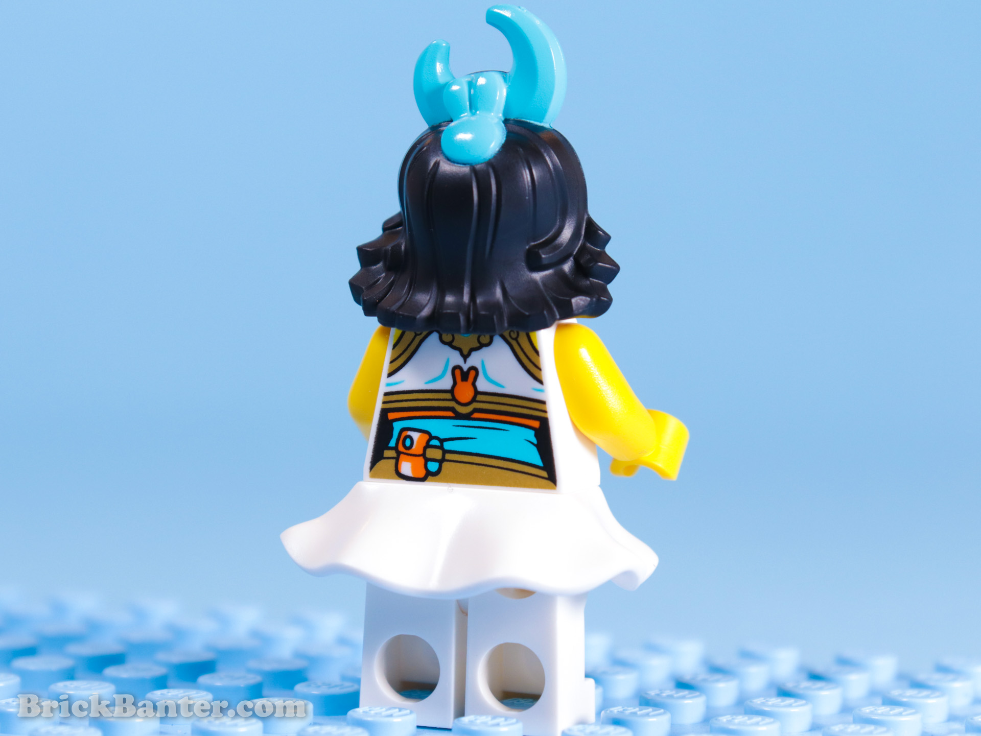 Chang’e sports a new hair mould for 2022. It’s such a unique and stunning new mould that quickly defines the character. Her outfit continues to show her passion for her little hopping friends, with a bunny brooch on her back and her colour palette still reminiscent of the carrot orange on the rest of the build.