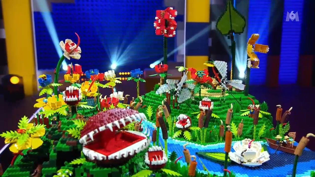 Doing a twist on a jungle where trees are replaced by giant oversized flowers and a giant flytrap is waiting to munch the adventurers. The team has focused on the mechanical part at the expense of the rest of the scene. The Brickmastesr come by and see the scene is very sparse and lacking in detail. They focus on getting more of the landscape filled while the monster is simplified. The train arrives at their land and they explain the adventurers have arrived in a land where the plants are able to grow wild and become carnivorous.