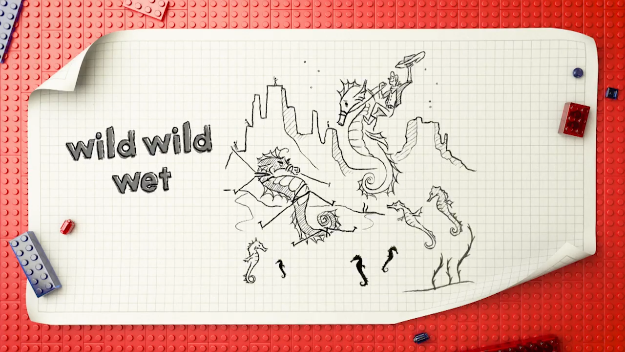 Taking a spin on a western classic, the team opt to create a take on horse wranglers by having some sea horses getting rounded up. Brickman loves the idea but notes that as the build is viewed top-down, the end results looses it’s effect as the smaller details are hidden from view.